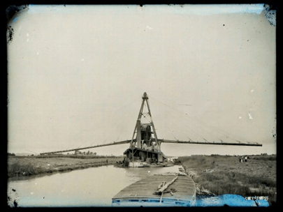Rạch Giá 1920-1929 – Vét kênh. Tàu xáng « Loire » đang nạo vét đoạn cuối của kênh lớn nối Rạch Giá và Hà Tiên. Nguồn hình: Trang face Book « Thú Chơi sách ».