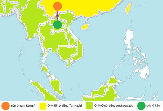 Ta đã dò ra hai cái gốc của những nhóm O-M95 ngày nay trong vùng nam Đông Á – Đông Nam Á – Ấn Độ: