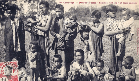 Ảnh bưu thiếp cổ: phụ nữ và trẻ em Campuchia thời kỳ thuộc địa Pháp. École française d’Extrême-Orient