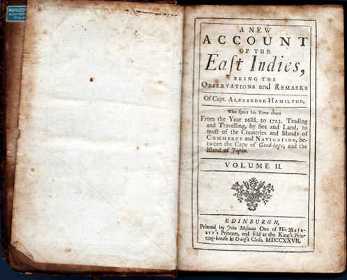 a/ « A new account of the East Indies »: tác giả Alexander Hamilton, Edinburgh, 1727. (« Một câu chuyện mới về vùng Đông Ấn »).