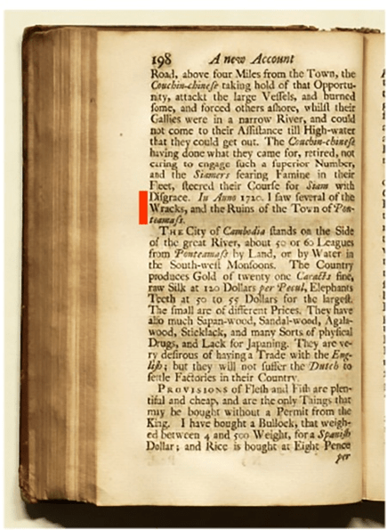 Tác giả người Pháp Emile Gaspardone đã nhận xét về quyển sách của tác giả Alexander Hamilton như là một tài liệu viết xưa nhất về vùng đất Hà Tiên.