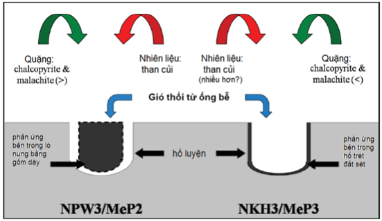 Khao Wong Prachan Valley (số 14 hình 4) là nơi luyện quặng đồng trong khoảng 1450 BCE – 300 CE, ở hai địa điểm Non Pa Wai và Nil Kham Haeng cách nhau 3km (viết tắt ‘NPW’ và ‘NKH’ trong hình 5), với sơ đồ ‘phục chế công nghệ’ (technological reconstruction) như hình 5.