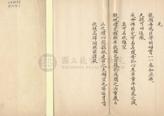 宿病霍然良已登, 即望北焚香叩首欽領御賜等物件, 拾襲珎藏。臣年尚𡸁髫, 不敢冒昧具表恭謝[2]天恩, 伏望王父轉為奏謝, 以達微忱。