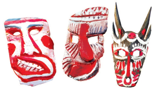 Mặt nạ được hình thành do xử lý trực tiếp trên mặt người trình diễn để làm nên sự khác biệt của chú hề. Loại mặt nạ này thường được dùng cho những ‘pơtual’, ‘mêu brêm’ không khoác trang phục hóa trang mà bôi trát trực tiếp lên người bằng bùn, đất sét pha loãng. Những chú hề này đòi hỏi khả năng trình diễn cao, không phải ai cũng làm được.