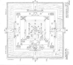 Điều khiến mọi người rất đỗi ngạc nhiên là tại sao người Nhật lại có sơ đồ của Angkor Wat? Trên mặt sau của tấm sơ đồ này, người ta thấy một bài ghi chú do Fujiwara Tadayori thực hiện năm 1772 cho biết là viên thông ngôn Shimano Kenryō 島野兼良 của lãnh địa Nagasaki được Mạc phủ Daiyū-in 大猷院 tức Tokugawa Iyemitsu cử đi Jetavana ở xứ Magadha thuộc vùng Trung Ấn để tìm hiểu (Péri N, 1923b, tr. 120). Tại sao trong phần ghi chú viết là đi viếng Jetavana (祇园精舍 Kỳ Viên tịnh xá) ở Trung Ấn mà học giả Itō Chuta lại xác định đó là Angkor Wat? Sự nhầm lẫn này đã được các nhà nghiên cứu đưa ra cách giải thích mà chúng tôi cho là thỏa đáng, và tới nay chưa thấy có học giả nào phản bác. Liên quan đến sự kiện này, chúng tôi chỉ chú ý đến chi tiết là từ năm 1623, là năm Tokugawa Iyemitsu được phong tướng quân, đến năm 1636 là năm Mạc phủ ban lệnh cấm người Nhật xuất nhập cảnh, có đoàn người Nhật đi trên thuyền Hà Lan đã đến Angkor Wat và đã vẽ sơ đồ khá chi tiết về khuôn viên của đền đài ở đó theo lệnh của Mạc phủ.
