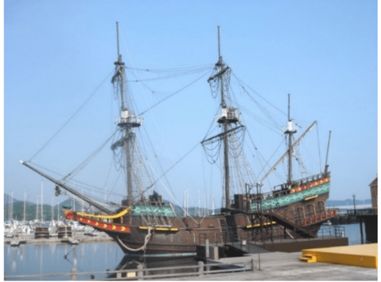 Hình 3. Chiếc De Liefde được phục dựng đang neo tại công viên chủ đề Huis Ten Bosch tại Nagasaki (Public Domain)