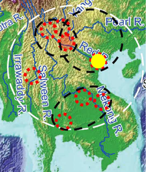 Hình 1. màu vàng: nước Cổ Loa, vẽ lại theo Pryce et al.[7]