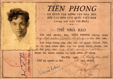 Vẫn còn đây trên tay tôi tấm thẻ nhà báo của ông do Nguyễn Đình Thi, chủ nhiệm báo Tiên Phong, cơ quan vận động văn hóa mới thuộc Hội Văn hóa cứu quốc, cấp ngày 25/12/1945 trên đó ghi rõ: “Ông Ngô Xuân Diệu là phóng viên của bản báo”. Với chứng cứ này, Xuân Diệu chắc chắn là một trong những nhà báo có thẻ đầu tiên của chính thể Cộng hòa. Chỉ hai ngày sau đó, ngày 27/12/1945, tại trụ sở Hội Văn hóa Cứu quốc nhà thơ của chúng ta đã cùng gần 100 nhà báo khác ở Hà Nội thay mặt báo giới cả nước họp và lập ra “Đoàn báo chí Việt Nam”. Nói cách khác, Xuân Diệu là một trong những “sáng lập viên” của Hội Nhà báo Việt Nam ngày nay.