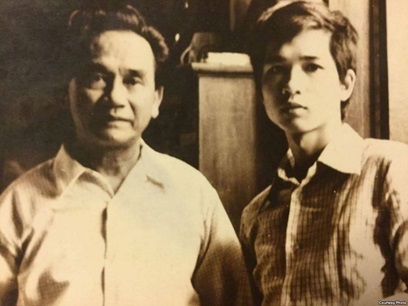 Xuân Diệu và Cù Huy Hà Vũ, cháu ruột và con nuôi của nhà thơ, 24 Điện Biên Phủ, Hà Nội, 1979. Nguồn ảnh: Cù Huy Hà Vũ