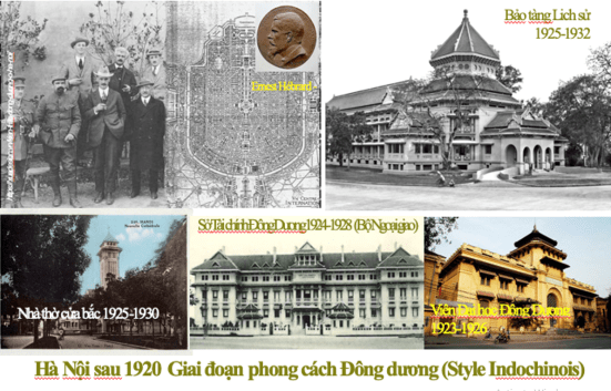 Thời kỳ thứ hai của quy hoạch Hà Nội và kiến trúc Pháp thuộc (từ năm 1920 đến năm 1954), gắn liền với vai trò của Ernest Hébrard (1875-1933), kiến trúc sư đến Việt Nam từ năm 1921, sau đó giữ trọng trách Giám đốc sở Quy hoạch kiến trúc Đông Dương đến 1931[11]. Đặc điểm nổi bật của thời kỳ này là những công trình mang phong cách kết hợp Âu và Á, gọi là phong cách Kiến trúc Đông Dương (Style Indochinois) mà Hebrard được coi là người khởi xướng. Bảo tàng Lịch sử Việt Nam (1926-1932), Viện Pasteur (năm 1927), Viện Đại học Đông Dương (1923-1926); Bảo tàng Louis Finot EFEO (1925-1932, Bảo tàng lịch sử hiện nay); Sở Tài chính Đông Dương (1924-1928); Nhà thờ Cửa Bắc (1925-1930); … là những công trình tiêu biểu của thời kỳ này, qua thời gian đã được đánh giá là thành công trong xử lý không gian kiến trúc phù hợp với phương Đông[12].