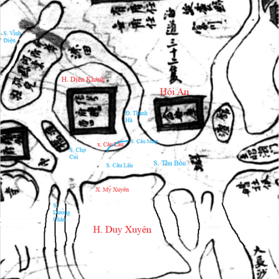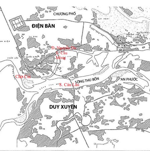 [155] Nguyễn Đình Đầu, Nghiên cứu địa bạ triều Nguyễn: Dinh Quảng Nam I (Tỉnh Quảng Nam – Đà Nẵng), NXB, Đại Học Quốc Gia, 2010, trang 44. Chúng tôi dùng Xã Câu Lâu như là một thí dụ để chứng minh điều khoản 3 trong giả thuyết về Sông Ngòi Nam Điện Bàn.