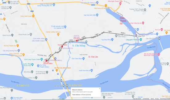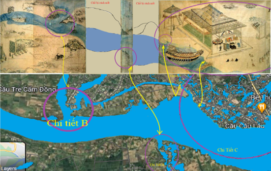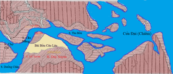[121] Hãy xem Camille Paris (1856-1908), Voyage d’Exploration de Hue en Cochinchine, Ernest Deroux, Paris, 1889, trang 82. Tại địa điểm mà tuyến tuyến đường Thiên Lý giao tiếp bờ sông Câu Lâu ở xã Mỹ Xuyên, Camille Paris cho biết có một bến phà. Từ đó, chúng tôi mới suy luận thêm ra rằng ở điểm này, ngày xưa là một bến đò.
