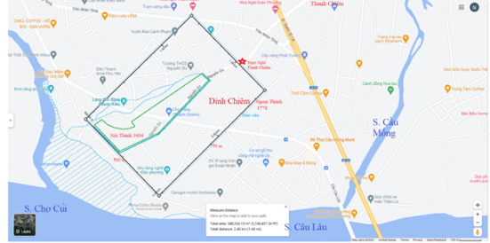 [168] 1 lý (league) = 4.8 km; www. dictionary.cambridge.org; Khi dùng diện tích của xã Thanh Chiêm (121 ha) được cung cấp bởi Địa Bạ Quảng Nam (1812) vẽ lên Google Map, kết quả cho thấy chu vi của xã Thanh Chiêm trên Google map là 4,8 km (hãy xem Hình 13). Phải chăng đây là sự tình cờ vì chu vi xã Thanh Chiêm vẽ từ địa bạ Quảng Nam (1812) thật giống với những gì Abbé Raynal đã trình bày với Charles Chapman vào năm 1778; cũng là 4,8 km. Có lẽ lời nói Abbé Raynal với Charles Chapman cho thấy ngoại thành Dinh Chiêm sau này trở thành địa giới của xã Thanh Chiêm chăng?