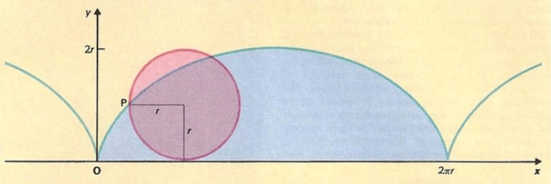 Để thành công trong hình học, dù là một nhà sáng tạo hoặc đơn giản là người giải toán, ta cũng phải sẵn sàng thí nghiệm, vẽ hình và kiểm tra nhiều trường hợp, thử hướng này, thử hướng nọ. Galileo (1564 – 1642), đã cố gắng tính diện tích giới hạn bởi một đường cycloid sinh bởi một đường tròn khi lăn trên một đường thẳng (Hình dưới). Sau những suy tư bằng vật lí qua khái niệm trọng tâm, ông ta cho rằng, và điều này sai, diện tích đó gần bằng nhưng không bằng đúng ba lần diện tích của hình tròn.