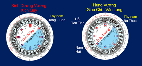 Thông tin này là cơ sở để hình thành vương quốc Xích Quỷ của Kinh Dương Vương 涇陽王, Kinh là sông Kinh, trong dịch học nó tương đương với sông Lạc, chảy từ tây nam tới đông bắc như hình minh họa, Dương là Châu Dương. Như vậy Kinh Dương Vương là vua của Châu Dương, có ranh giới là sông Kinh. Đồng thời nước của Hùng Vương cũng được thành lập trên cơ sở này, cụ thể ranh giới nước Văn Lang là: “Đông giáp Nam Hải, tây tới Ba Thục, bắc tới hồ Động Đình, nam tới Hồ Tôn Tinh”, ranh giới này hoàn toàn chính xác trên sơ đồ dịch học và trên thực địa, tất nhiên nước Văn Lang này là nước Việt, của người Việt Thường thị. Như vậy, truyện họ Hồng Bàng là một cách mã hóa lịch sử, chứ không phải là hoàn toàn hư cấu.