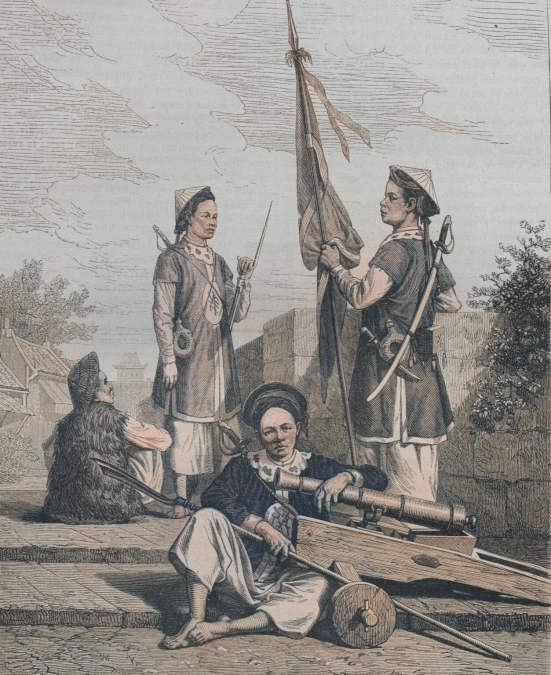Những chiến binh mang quần đùi đỏ, có râu mèo xoắn lên và có cổ họng bị cứng rắn bởi rượu áp-xanh, đã có dự tính lãnh danh dự chiếm lĩnh Bien Noa [Biên Hoà] một cách huy hoàng, những quân lính An-nam đã khôn lanh, họ muốn quấy rầy quân Pháp, nên đã di tản hết.