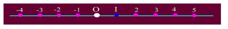 Giờ đây những số hữu tỉ có được biểu diễn hình học như sau: Lấy 2 điểm phân biệt O và I trên đường thẳng, I ở bên phải của O, và chọn độ dài OI là đơn vị độ dài. Nếu chúng ta chọn O là điểm biểu diễn số 0, I là điểm biểu diễn số 1, thế thì những số nguyên dương và âm có thể biểu diễn bằng những điểm lần lượt ở bên phải và trái của O và cách nhau bằng đơn vị độ dài.