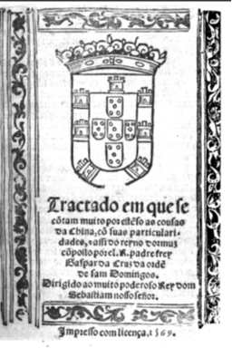 Trang bìa của quyển sách bằng tiếng Bồ Đào Nha của Gaspar da Cruz.