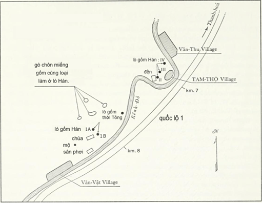 Janse (1892–1985), nhà khảo-cổ-học người Thụy Điển,[7] khi khảo sát mộ Tàu ở Thanh Hóa hồi những năm 1930, đã tình cờ tìm ra di tích một số lò gốm ở làng Tam Thọ, lúc đó là phủ Đông Sơn (hình 2). Những lò này làm đồ gốm kiểu Hán, từ đầu công nguyên tới thời ‘lục trào’ (220–587); trong vùng còn có những lò của người Việt hồi thời trào Tống, làm ra kiểu gốm riêng cho người bổn xứ.