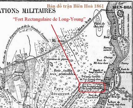 Đồn Long Vương trong bản đồ trận đánh Biên Hoà của liên quân Pháp- Tây Ban Nha năm 1861