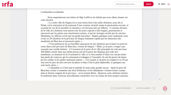 Chúng tôi sẽ mượn các bức thư của Đức Cha Lefebvre những chi tiết mà chúng tôi sẽ đưa ra về miền truyền giáo này. “Thành phố Sài Gòn, nơi có tám đến mười ngàn người theo đạo Công giáo tập trung, là nơi duy nhất nơi họ được an toàn nhất khỏi sự bách hại công khai, và ở khía cạnh đạo đức, tình hình ở đó đã trở nên tồi tệ hơn ở nơi khác, Vị giám mục này cho chúng ta biết. Ở một khoảng cách nhất định từ thành phố, các tín hữu vẫn mỗi ngày bị đe dọa bị truy đuổi, bị săn lùng và bị người ngoại giáo giết hại, những kẻ không thành thật quy phục, và bởi những kẻ nổi dậy bị kích động bởi các quan lại cũ hoặc các quan chức dân sự đã mất chức vụ của họ. Trong vài tháng qua, chúng tôi đã có 20 người theo đạo Công giáo ở tỉnh Sài Gòn bị bắt làm tù binh bởi các thuộc hạ của các quan lại ở Biên Hòa và bị giết sau đó.”