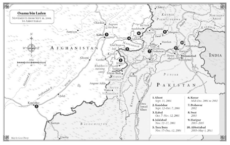 Các địa điểm di chuyến của Bin Laden từ 11/9 đến Abbottabad
