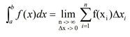 Với sự xuất hiện của hình giải tích vào thế kỷ mười bảy, vấn đề cuối cùng đã hình thành như sau: Cho y = f(x) có đồ thị là một đường cong liên tục nằm phía trên trục Ox trong hệ trục vuông góc Oxy. Xét diện tích A của phần giới hạn bởi trục Ox, đồ thị y = f(x), và hai đường thẳng x = a, x = b. Để tính diện tích A này, ta chia diện tích thành n miếng thẳng đứng có chiều rộng ∆x1, ∆x2 , . . . , ∆xi , . . ., ∆xn. Trong mỗi miếng ta chọn một tung độ : f(x1) trong miếng thứ nhất, . . ., f(xi) trong miếng thứ i . . . Tổng các diện tích của n miếng chữ nhật là giá trị gần đúng của diện tích A: