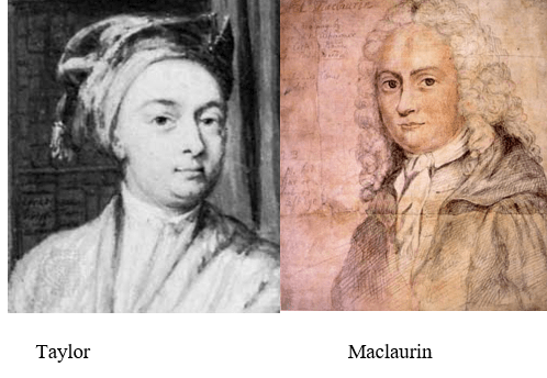 Khai triển f(x) thành một chuỗi số lũy thừa của x – a xuất hiện năm 1715 mà không đề cập đến sự hội tụ trong tác phẩm Methodus incrementorum directa et inverse của nhà toán học Anh Taylor (1685- 1731), và từ đó được gọi tên là khai triển Taylor của hàm số f(x) tại x = a. Khai triển Taylor ứng với a = 0 được gọi là khai triển Maclaurin của f(x), mặc dù Taylor và Stirling có đề cập đến khai triển này vài năm sau đó. Nó được gọi là khai triển Maclaurin sau khi nó được sử dụng đến trong công trình vĩ đại và có ảnh hưởng gồm 2 quyển có tên Luận Thuyết Về Vi Phân của Maclaurin (1698-1746), trong đó có tham khảo đến phát hiện của Taylor và Stirling.