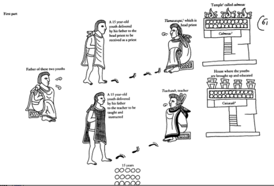 Trường học ở đế chế còn được chia làm hai loai, một cho thường dân (Tēlpochcalli) và một dành cho quý tộc (Calmecac) (ảnh 2). Tuy nhiên, đôi khi thường dân cũng có thể được đi học tại các trường dành cho quý tộc nếu như tài năng.