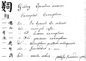 Kính (speculum La Tinh) tương ứng với espelho (tiếng Bồ Đào Nha, có gốc La Tinh là speculum): vào thời VBL, kính cũng là gương và đồng – xem một trang tự điển chép tay từ nguyên bản VBL vào cuối TK 18 bên dưới – trích từ tự điển chép tay lưu trữ trong thư viện Toà Thánh La Mã Borg.tonch.23