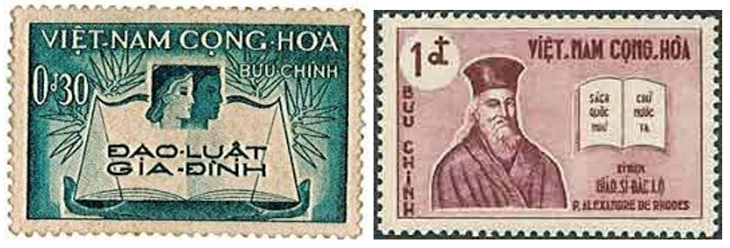 Thời đệ nhất VNCH các bưu hoa (tem) đều in hàng chữ: Việt Nam Cọng Hòa thay vì Việt Nam Cộng Hòa. Vd. tem về Đạo Luật Gia Đình, về giáo sĩ Đăc Lộ.