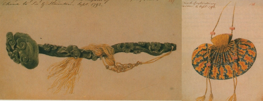 [47] Hà bao này là một cái túi của chính vua Càn Long đang đeo trên người và ông cởi ra ban cho cậu bé Staunton khi nói được với ông mấy câu bằng tiếng Trung Hoa. Đối với nhà Thanh, một món đồ dùng hàng ngày của nhà vua ban cho là một vinh dự cực kỳ to lớn. Cũng sau này, vua Càn Long cũng ban cho vua Quang Trung hai trái cầu nhỏ để xoay xoay cho ấm tay. Các trái cầu này là đồ dùng riêng của ông nhưng sử sách chưa bao giờ biết đến sự vinh hạnh khác thường này.