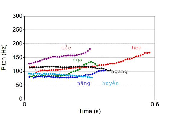 Trích từ bài viết “The ups and downs of Vietnamese tones” (University of Maryland, 2009) với các tác giả Jessica Bauman, Allison Blodgett, C. Anton Rytting, Jessica Shamoo.