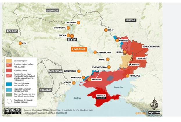 Trận chiến giành Donbas không trở thành bước ngoặt trong cuộc chiến như nhiều người hy vọng hoặc lo sợ. Vào nửa cuối tháng 7, người đứng đầu của MI6 Anh, Richard Moore, gọi những bước tiến của Nga là “nhỏ” và cho rằng quân đội Nga sắp “hết hơi”. Moore nói tiếp: “Chúng tôi đánh giá rằng người Nga sẽ ngày càng gặp khó khăn trong việc tìm kiếm nhân lực và vật lực trong vài tuần tới. Họ sẽ phải dừng lại theo một cách nào đó, và điều đó sẽ tạo cơ hội cho người Ukraine phản công”.