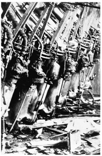 Trở lại Vemork, Alf Larsen, kỹ sư trưởng, bước qua cánh cửa thép đã bị thổi bay khỏi bản lề và chiếu đèn pin xung quanh phòng nồng độ cao. Mọi thứ đều nằm trong đống đổ nát. Hai hàng tế bào nước nặng – những gì còn lại của chúng – đứng ở một góc xiêu vẹo trên sàn nhà, cái giá bằng gỗ của chúng tan thành từng mảnh. Các máy bơm bị hỏng, những bức tường bị cháy xém, cửa sổ bị vỡ, và mạng lưới ống trên đầu đều hư hỏng nặng.. Những mảnh sắt đã cắt qua các ống đồng của hệ thống làm mát và nước đang phun ra lênh láng trong phòng.