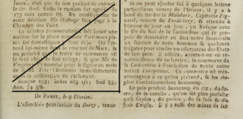 | Hai chiếc thuyền HMS Resolution và HMS Discovery đang trên đường đi vòng quanh thế giới | Mẩu tin ngày 9 tháng 2 năm 1787 trên tờ Gazette de Cologne về thuyền Malabare chở phái đoàn xứ Đàng Trong cập bến Orient (nước Pháp) |