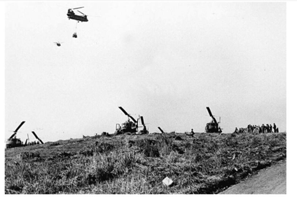Trực thăng Mỹ đang chuẩn bị chở quân đội miền Nam qua biên giới Lào vào trận chiến như một phần của Chiến dịch LAM SON 719, tháng 4 năm 1971. (Bộ sưu tập ảnh Douglas Pike, Lưu trữ Việt Nam, Đại học Texas Tech)