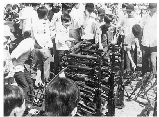 Dân chúng đi xem trưng bày vũ khí tịch thu được của Bắc Việt tại Công trường Lam Sơn Saigon. (National Archive Photo)