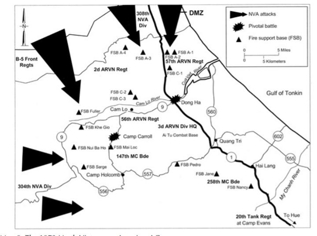 Trong khi các đồng minh tranh luận về khả năng xảy ra một cuộc tấn công lớn của Cộng sản, Bắc Việt đã hoàn tất các công tác chuẩn bị cho cuộc xâm lược miền Nam. Vào ngày 30 tháng 3, Bắc Việt bắt đầu cuộc tấn công bằng một trận pháo kích ồ ạt vào các vị trí của Sư đoàn 3 của QĐVNCH dọc theo DMZ (xem bản đồ 9).