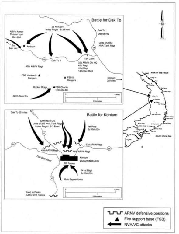 Sư đoàn 22, không phải là một trong những đơn vị QĐVNCH tốt nhất, đã khuất phục trước tác động tâm lý của các cuộc tấn công dữ dội. Khi quân miền Nam chạy trốn khỏi khu vực Tân Cảnh-Đắk Tô trong nỗi kinh hoàng, họ đã bỏ lại 23 khẩu lựu pháo 155 mm, 10 xe tăng M-41 và 16.000 viên đạn cho kẻ thù. Sau những trận chiến này và cuộc rút lui sau đó, Sư đoàn 22 QĐVNCH không còn là một đơn vị đạt hiệu quả chiến đấu, và cuối cùng, chỉ huy sư đoàn đã bị cách chức. Điều duy nhất làm chậm cuộc tấn công của kẻ thù là sức mạnh không quân chiến thuật. Thương vong về phía các nhân viên cố vấn Mỹ của Sư đoàn 22 trong những trận chiến này là 4 chết, 1 bị thương và 10 mất tích trong chiến đấu; Kaplan và 8 cố vấn đồng đội của ông đã được trực thăng Hoa Kỳ sơ tán khi kẻ thù tràn ngập các vị trí của miền Nam tại Tân Cảnh. Trong khi quân BV chiếm Dak To, các lực lượng Cộng sản bổ sung đã cắt đứt Đường 1, đẩy hầu hết các đơn vị miền Nam đang bảo vệ con đường khỏi cứ điểm của họ và thực sự giành được quyền kiểm soát gần như toàn bộ Tỉnh Bình Định.