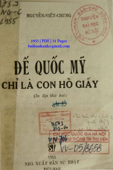 1. Lý luận lạ quá . Nếu Liên Sô & Trung Quốc (mới) là “đế quốc”, trong khi Mỹ không phải là “đế quốc”, suy ra Ngụy hổng phải là “bè lũ bán nước”, vậy Ta dựa vào “đế quốc” Liên Sô & Trung Quốc để đánh cho Mỹ cút Ngụy nhào . Hóa ra Ta là … cái gì vậy à!