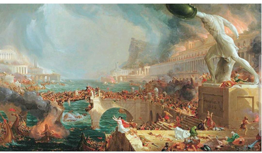 Sơn dầu, 1836, của Thomas Cole, tưởng tượng về sự sụp đổ của nền văn minh cổ điển, lấy cảm hứng từ sự kiện người Vandal cướp phá thành La Mã năm 455.