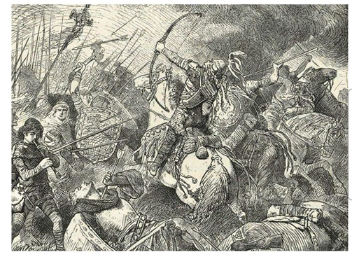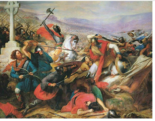 Trận chiến POITIERS (1837), do CHARLES AUGUSTE STEUBEN vẽ, miêu tả người Frank chiến đấu dưới một cây thánh giá của người CELT có tính biểu tượng cao, như những chiến binh bảo vệ đạo Cơ đốc.