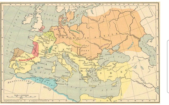 Giống như các đế chế khác, vương quốc Hung, được thể hiện trên bản đồ vào khoảng năm 450, nhanh chóng tan biến sau cái chết của thủ lĩnh Attila