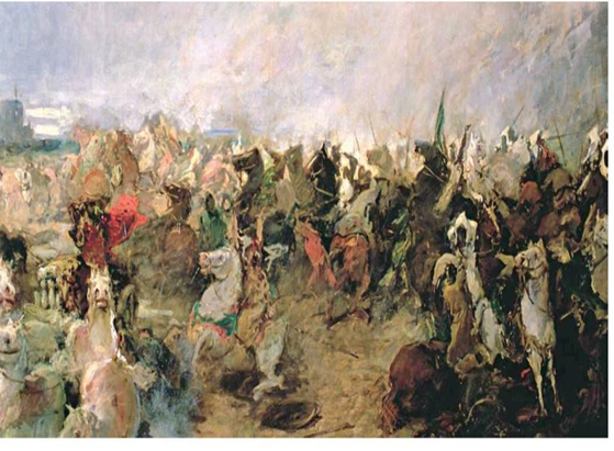 Vào sáng thứ Bảy đó, khi mặt trời mọc trên những cánh đồng lạnh lẽo và sương mù, những người Hồi giáo cầu nguyện với Mecca rồi nhảy lên ngựa. Họ lao tới từ khoảng cách hơn nửa dặm (0,8 km), cho mình thời gian để tăng tốc, hét lên những tiếng kêu chiến đấu với Allah và đánh trống và chũm chọe. Họ tiếp tục hét lên với sự cuồng nhiệt hoang dã khi họ tràn về phía phòng tuyến của kẻ thù.