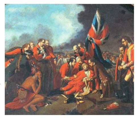 Cái chết của vị tướng Anh 32 tuổi JAMES WOLFE trong trận chiến chống lại quân đội Pháp ở QUEBEC được thể hiện trong bức tranh sơn dầu nổi tiếng của họa sĩ người Mỹ BENJAMIN WEST,