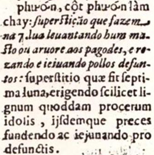 ‘Chùa thờ bụt thì một làng một chùa, nhà thờ thần thì cũng vậy chẳng kể được cho (hết)’ trích từ thư viết tay của Bentô Thiện (1659), chụp lại trong trang 150 Lịch sử chữ quốc ngữ 1620-1659 (Đỗ Quang Chính, sđd).
