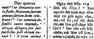 [22] Một lần nữa, ta thấy LM de Rhodes đã dùng hai tài liệu khác nhau để soạn ra VBL, phần tiếng Bồ ít chi tiết hơn so với phần La Tinh có phê bình thêm (cập nhật).
