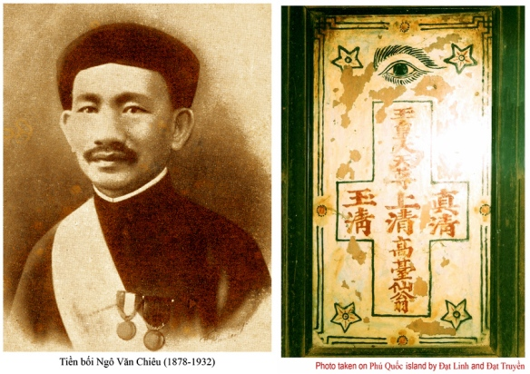 (3): Ông Ngô Văn Chiêu (1878 – 1932) là người đệ tử đầu tiên của Đức Cao Đài Tiên Ông. Trong thời gian làm việc tại Tòa Hành Chánh tỉnh Hà Tiên (tháng 3 năm 1920 đến tháng 10 năm 1920), ông giao du với quý nhân sĩ địa phương và thường tổ chức cầu Tiên. Sau đó ông thuyên chuyển ra quận Phúc Quốc (tháng 10 năm 1920 đến tháng 7 năm 1924) và cũng thường cầu Tiên ở ngôi chùa Quan Âm Phật Đường của Đạo Minh Sư. Chính tại Phú Quốc ông được Cao Đài Tiên Ông nhận làm đệ tử đầu tiên và dạy Đạo cho ông qua những buổi Tiên Ông giáng cơ. Ông có đạo hiệu là Minh Chiêu nên thường được biết với tên Ngô Minh Chiêu. Sau khi rời Phú Quốc về Sài Gòn làm việc, ông tiếp tục âm thầm học Đạo. Khi quý đệ tử họp lại khai đạo năm 1926, Đạo Cao Đài bắt đầu phát triển mạnh, tuy nhiên vì không cùng phương pháp tu tập, một bên là ra đời truyền đạo gọi là Công truyền, một bên là Tâm truyền, ông theo phương pháp Tâm truyền rất kín đáo, thu nhận chọn lọc đệ tử, từ chối chức Giáo Tông. Về sau pháp môn tu của ông trở thành một nhánh Đạo và có tên là Cao Đài Chiếu Minh.