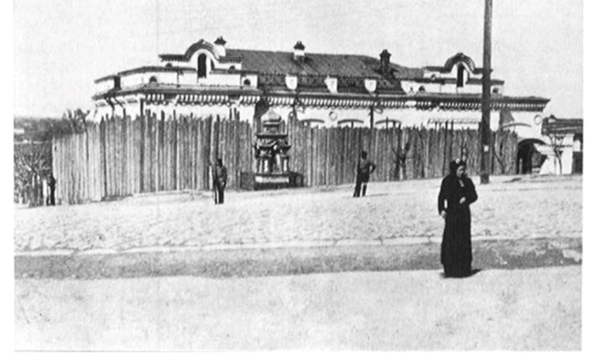 Nhà Ipatiev được bao quanh bởi rào chắn, năm 1918